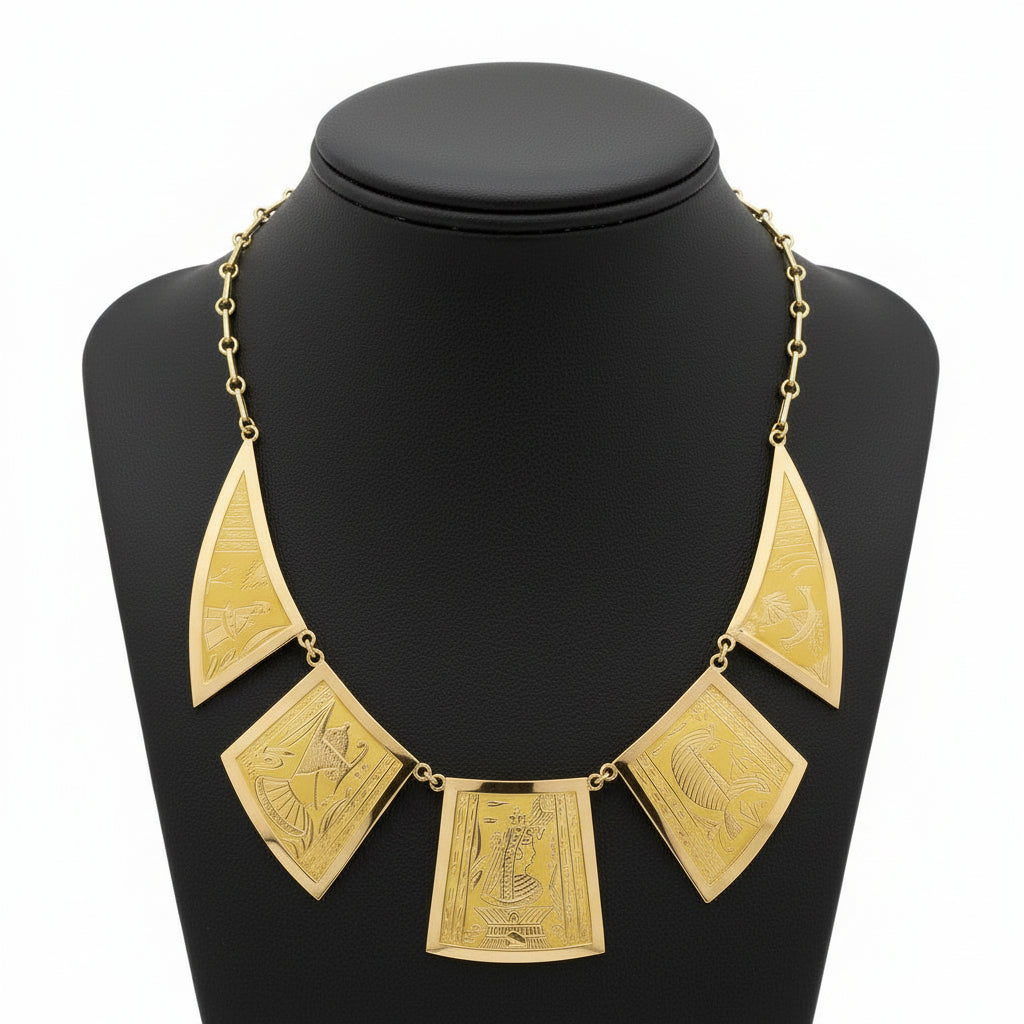 Jewelry Type : NecklaceJewelry Style : Egyptian StyleMetal Type : 14K Yellow GoldMetal Weight : 37.79 gramsBrand : EstatePeriod : Modern 1950'sMeasurement : 16"