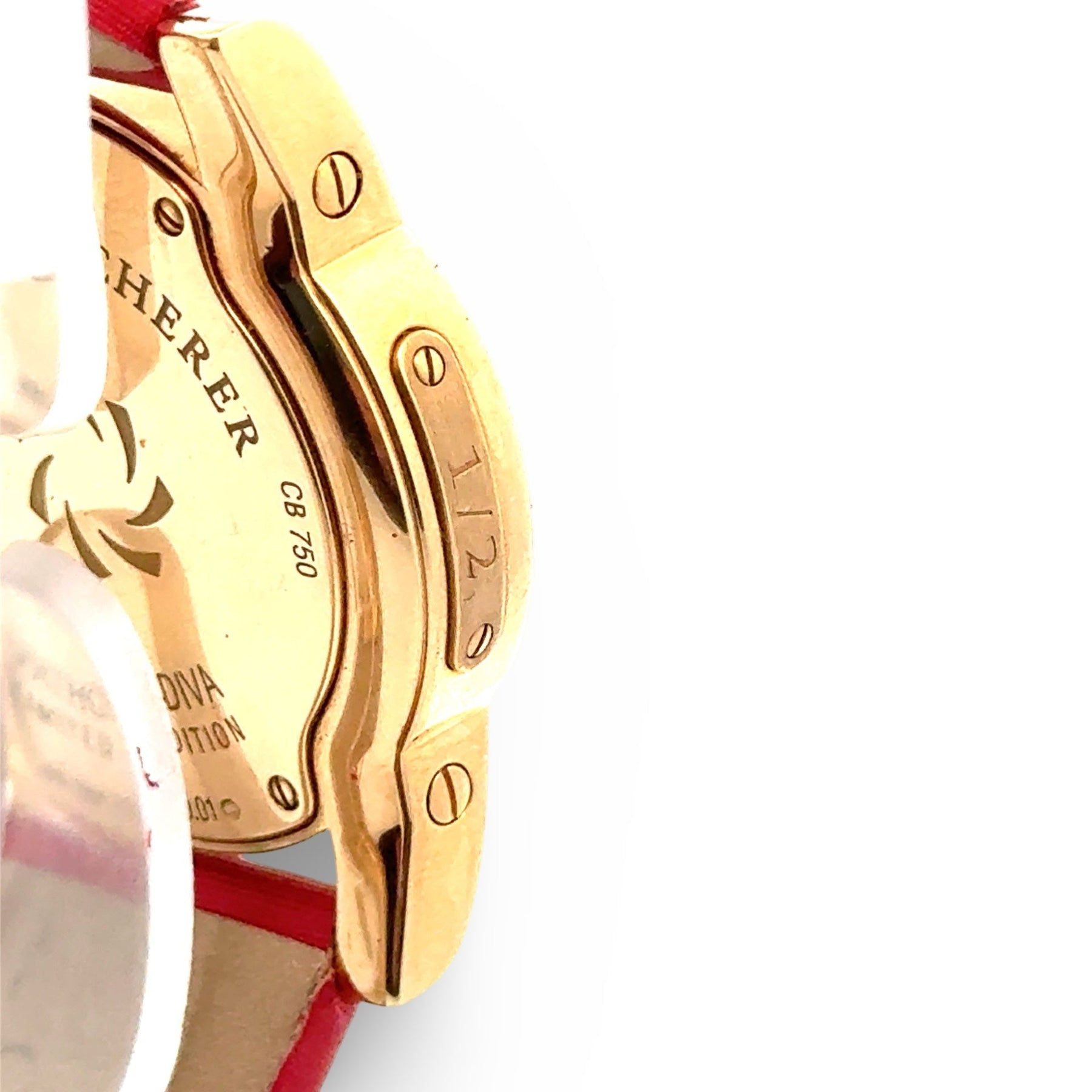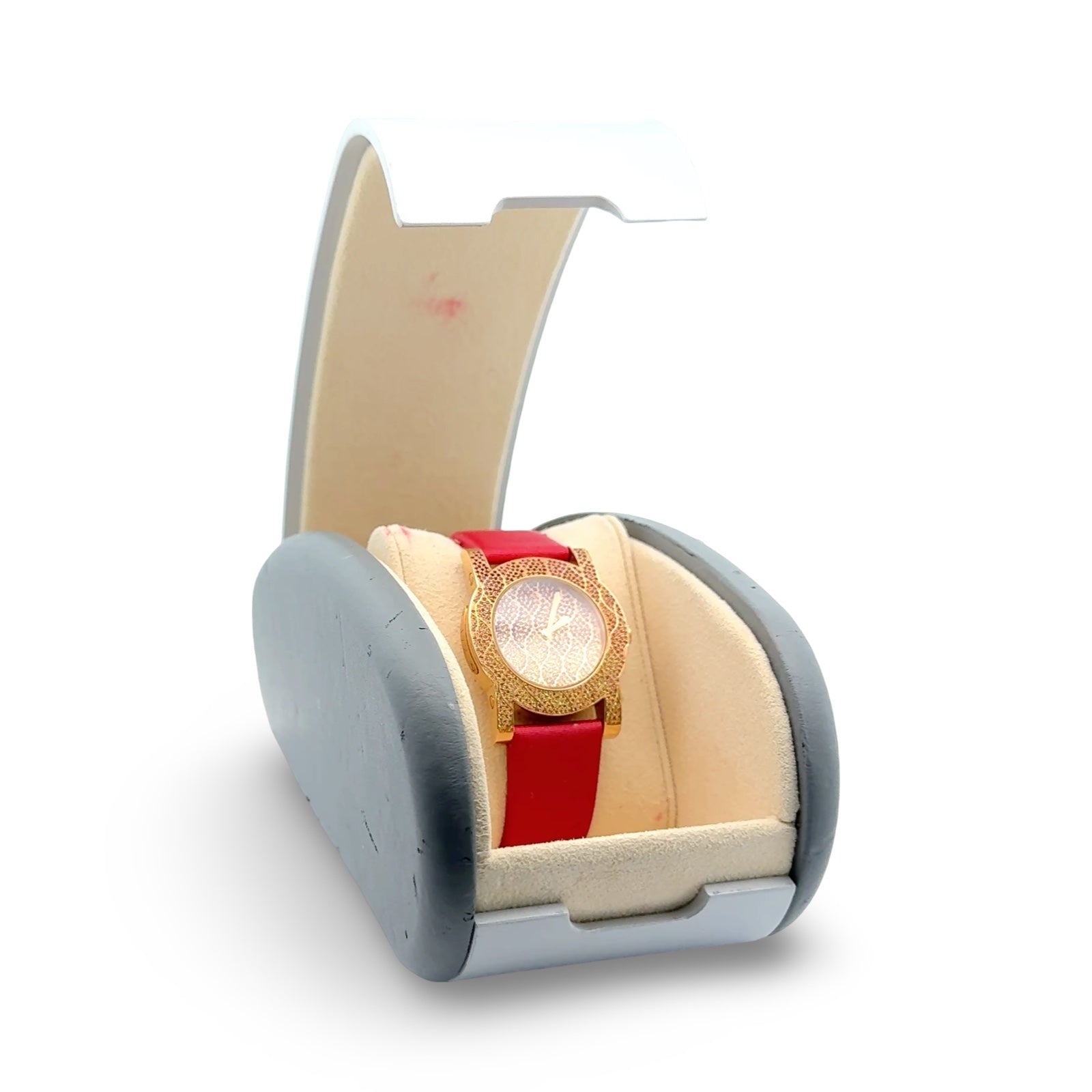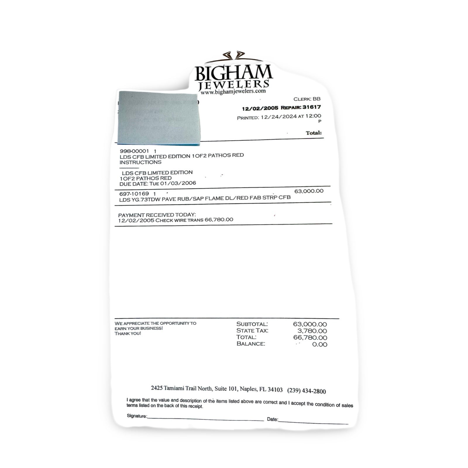 Estate Watch, Round Brilliant Cut Diamond 0.73 ct FY VS1-VS2, Sapphire Round 0.80 ct Pink 18K Yellow Gold 71.46g Movement 10510.01, additional red strap included