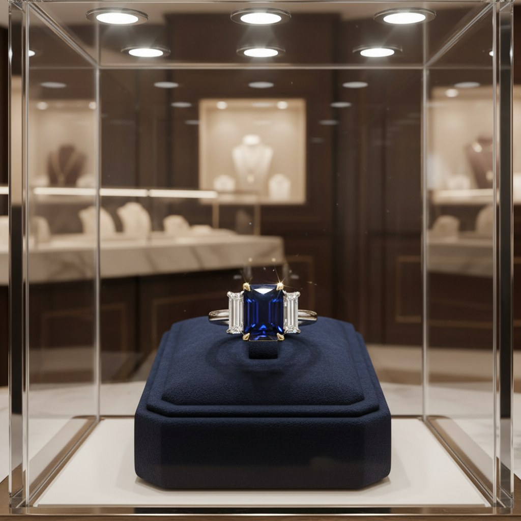Jewelry Type : Ring Metal Type : 18K/PLAT Yellow Gold Metal Weight : 6.34 grams Ring Size : 5.75 Brand : Estate Period : Modern 1990's Center Stone : Stone Type : Sapphire Center Stone : Shape : Emerald Cut Center Stone : Stone Weight : 2.57 ct Center Stone : Quantity : 1 Center Stone : Color : Blue Center Stone : Clarity : VS1 Center Stone : Lab : AGL Center Stone : Cert. : CS1072985 Side Stone 1 : Stone Type : Diamond Side Stone 1 : Shape : Baguette Cut Side Stone 1 : Stone Weight : 0.68 ct Side Stone 1 : Quantity : 2 Side Stone 1 : Color : I-J Side Stone 1 : Clarity : VS1-VS2