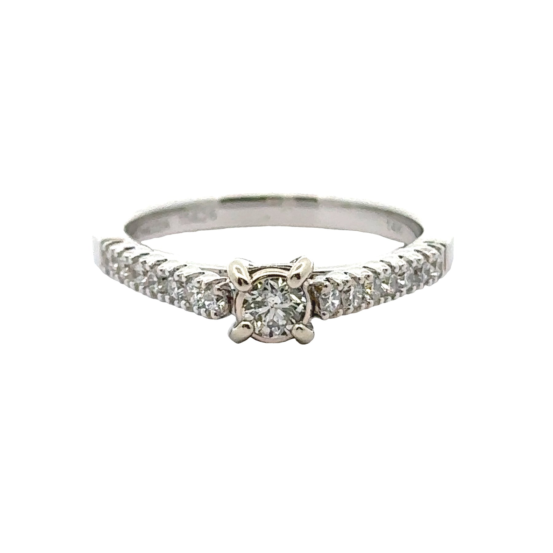 Jewelry Type : Ring Metal Type : 14K White Gold Metal Weight : 3.37 grams Ring Size : 6.50 Brand : Carrizza Center Stone : Stone Type : Diamond Center Stone : Shape : Round Center Stone : Stone Weight : 0.26 ct Center Stone : Quantity : 1 Center Stone : Color : G-H Center Stone : Clarity : SI1-SI2 Side Stone 1 : Stone Type : Diamond Side Stone 1 : Shape : Round Side Stone 1 : Stone Weight : 0.29 ct Side Stone 1 : Quantity : 14 Side Stone 1 : Color : G-H Side Stone 1 : Clarity : SI1-SI2