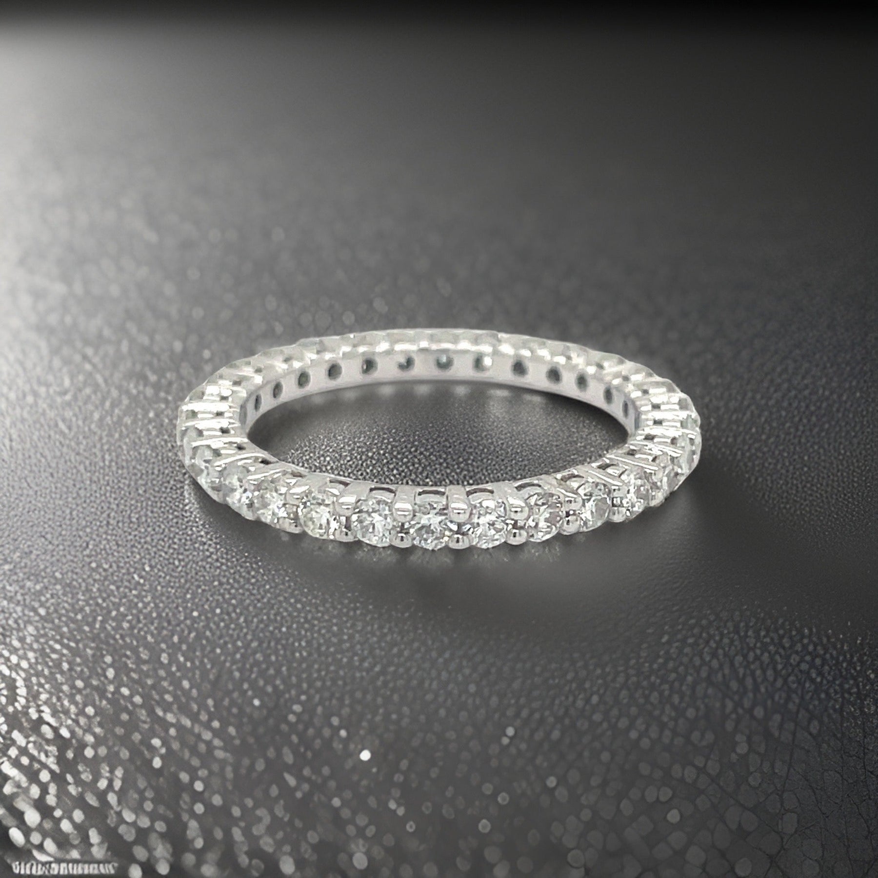 Maya Lianna Eternity Band Ring, 30 Round Diamond 1.03 cttw, 14K White Gold 2.22g