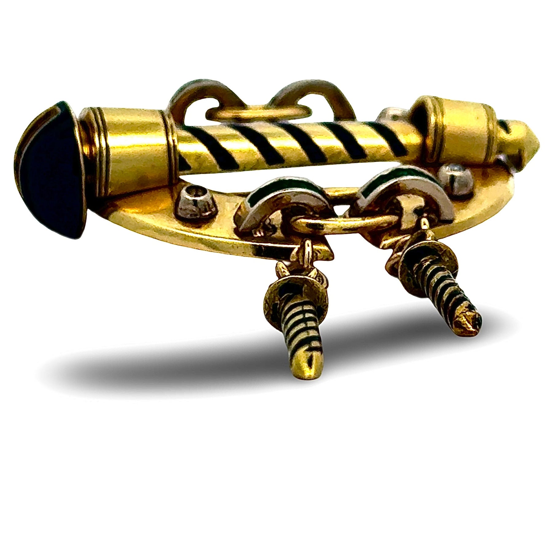 Estate Italian Brooch, 4 Round Brilliant Cut Diamond 0.10 cttw. G-H VS2-SI1, 20 Emerald French Cut 0.40 cttw. , Enamel BLACK , 18K Yellow Gold 20.48g