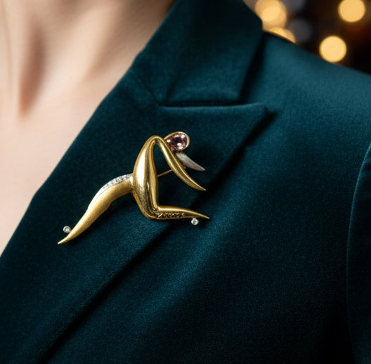 Jewelry Type : Brooch/Pendant Metal Type : Platinum/18K Yellow Gold Metal Weight : 8.85 grams Brand : Kazuo Ogana Period : Modern 1990's Measurement : 48.08x29.84mm Side Stone 1 : Stone Type : Diamond Side Stone 1 : Shape : Round Brilliant Cut Side Stone 1 : Stone Weight : 0.06 ct Side Stone 1 : Quantity : 5 Side Stone 1 : Color : H-I Side Stone 1 : Clarity : SI1-SI2 Side Stone 2 : Stone Type : Kunzite Side Stone 2 : Shape : Pear Shape Side Stone 2 : Stone Weight : 0.33 ct Side Stone 2 : Quantity : 1