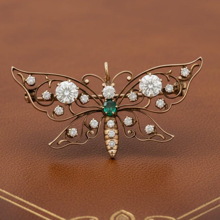 A curated collection of vintage, antique, and estate brooches chosen for their artistry, detail, and timeless charm. From Victorian gold designs and Art Deco gems to mid-century florals, figural motifs, and collectible statement pieces, each brooch is selected for its beauty, originality, and history.