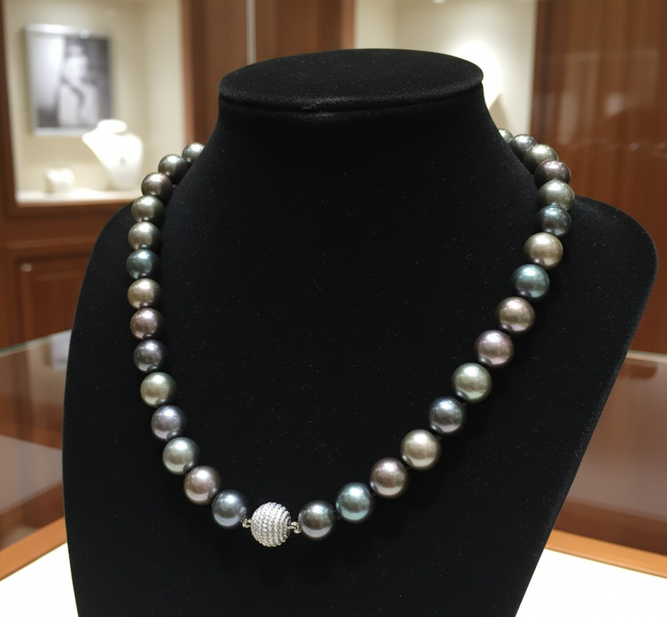 Estate Necklace 33 South Sea Pearl Fine Multi Color, 18K White Gold 13.00g