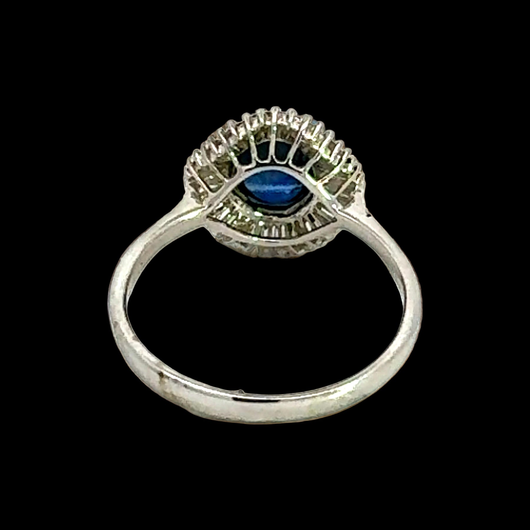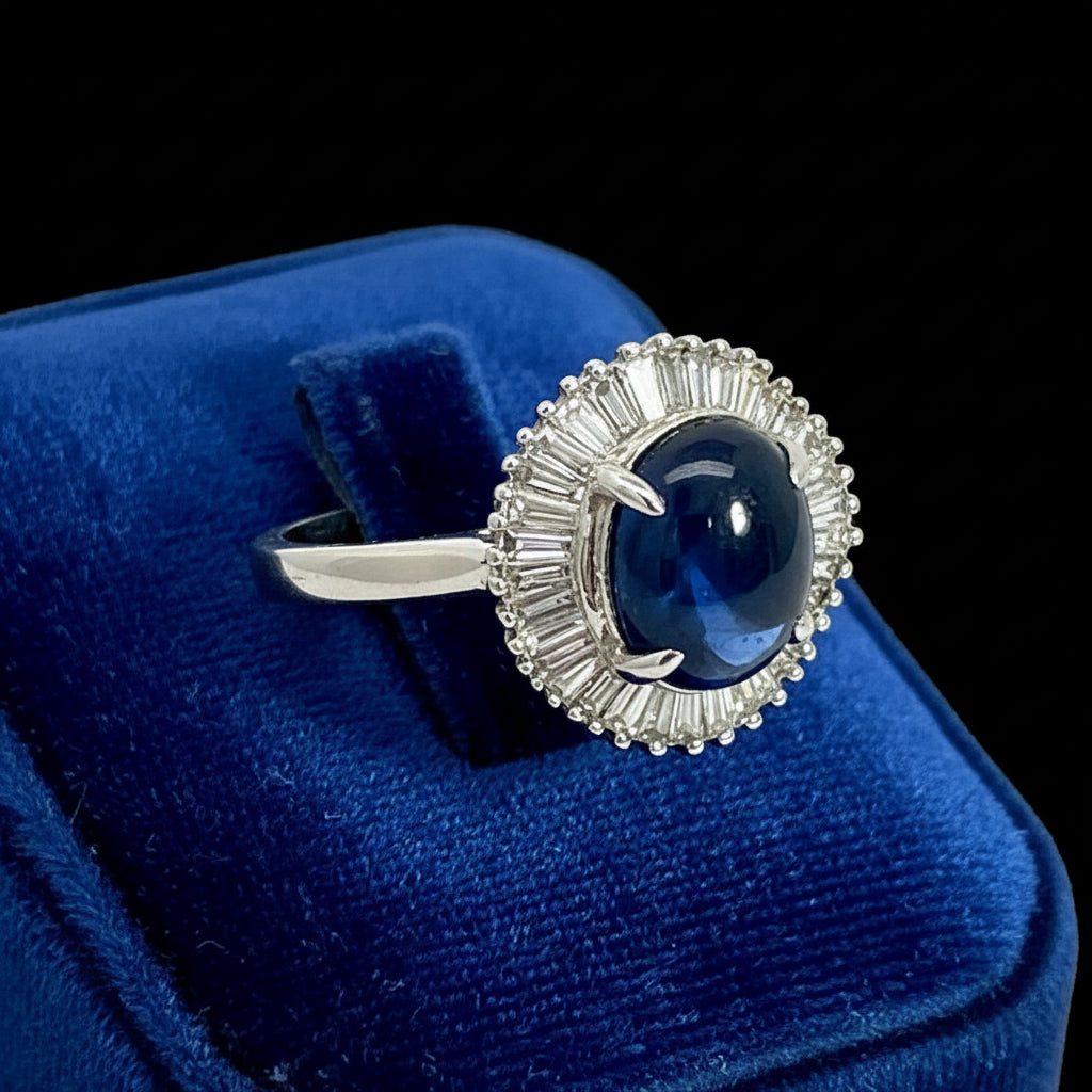 Estate Ring, Mixed Cut Diamond 0.60 cttw G-H VS1-VS2,1 Sapphire Cabochon 2.54 ct Fine 18K White Gold 3.70g