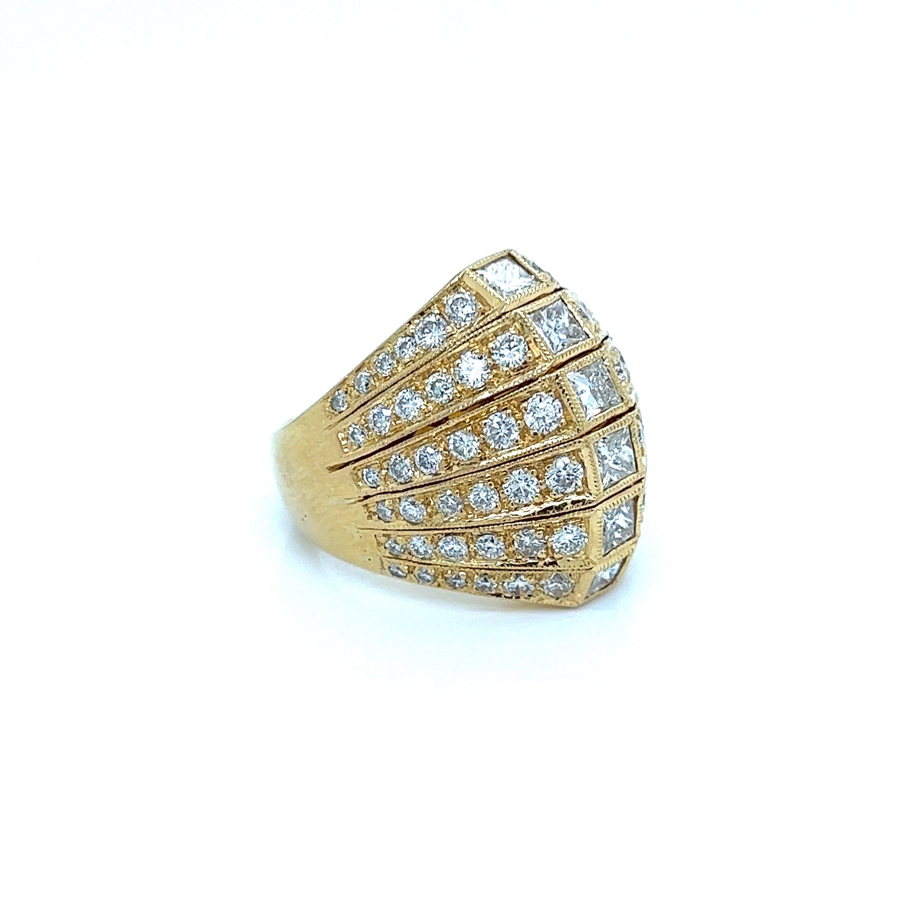 Jewelry Type : Ring Jewelry Style : Custom Designer Metal Type : 18K Yellow Gold Metal Weight : 20.5 grams Ring Size : 7.25 Brand : Estate Center Stone : Stone Type : Diamond Center Stone : Shape : Princess Center Stone : Stone Weight : 3.27 ct Center Stone : Color : G-I Center Stone : Clarity : VS2-SI1