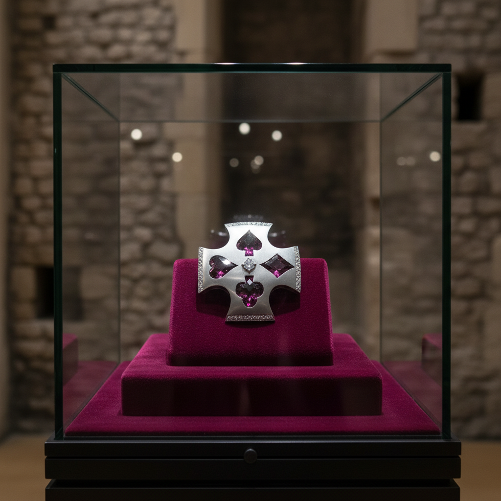 This exquisite pendant was custom-commissioned for a prominent Las Vegas casino owner's wife, showcasing four stunning fancy-cut garnets totaling 13.87 carats set in 18K white gold. Thirty-six round brilliant diamonds (0.74 ct) accent the design, creating a sophisticated interplay of deep red and brilliant sparkle. A masterpiece of early 2000s modern craftsmanship, this bespoke piece combines luxury gemstones with impeccable artistry, making it a truly one-of-a-kind statement jewelry piece with exceptional provenance and prestige.