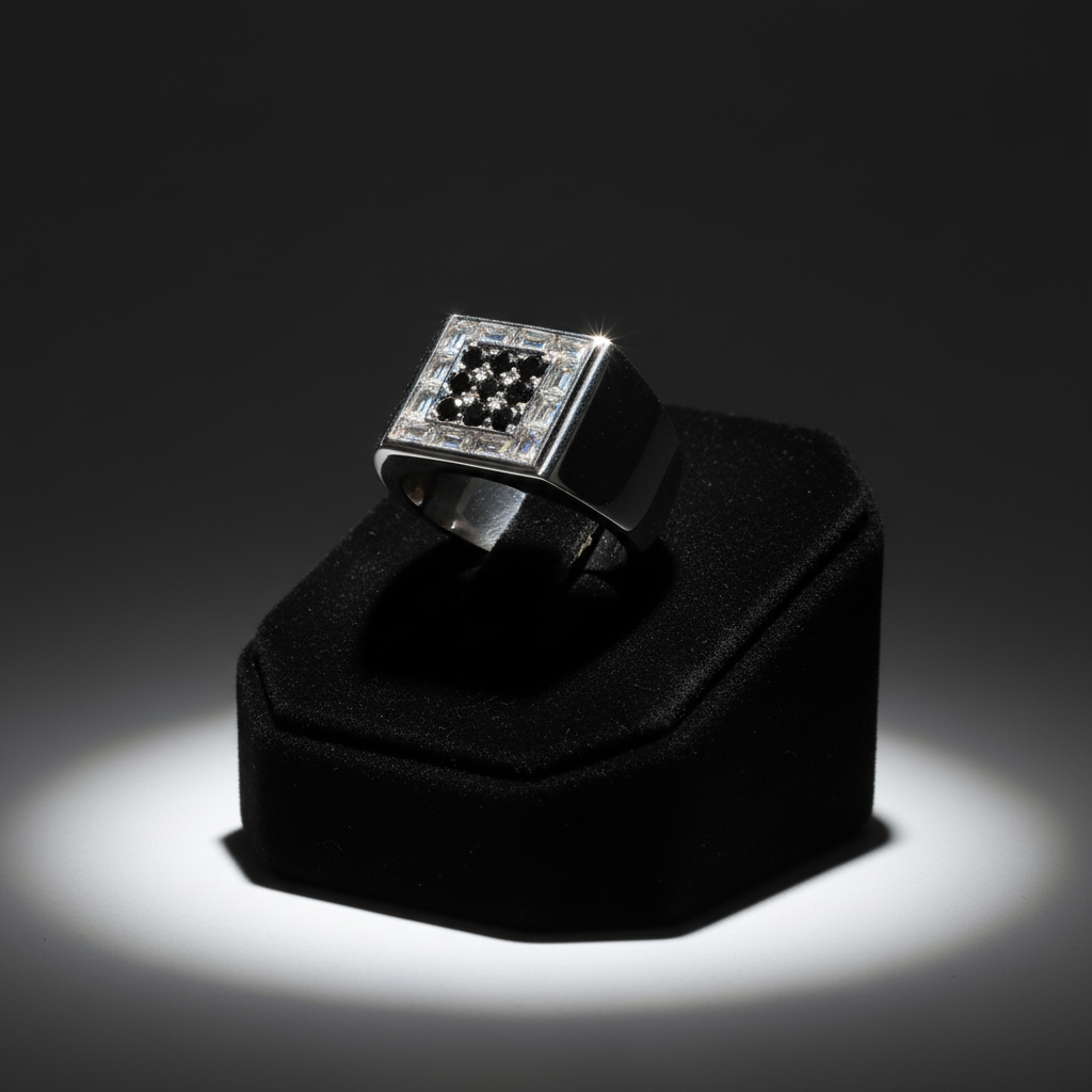 Graff Ring, Black and White Diamond 1.50 cttw F-G VS1, Platinum 15.80g. Size 8.5