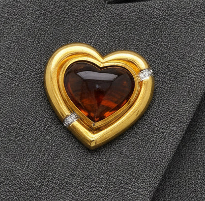 Jewelry Type : Brooch Metal Type : 18K Yellow Gold Metal Weight : 27.47 grams Brand : Tiff & Co Paloma Picasso Measurement : 33mm x 31mm Center Stone : Stone Type : Citrine Center Stone : Shape : Heart Center Stone : Stone Weight : 22.31 ct Center Stone : Quantity : 1 Side Stone 1 : Stone Type : Diamond Side Stone 1 : Stone Weight : 0.1 ct Side Stone 1 : Color : G-H Side Stone 1 : Clarity : VS