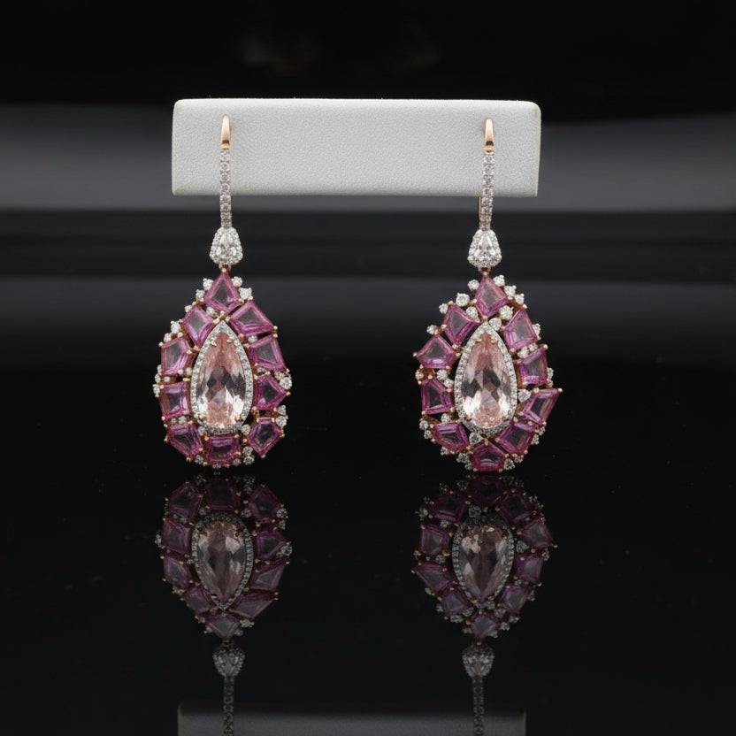 Jewelry Type : EarringsMetal Type : 18K White/Yellow GoldTotal Weight : 13.29 gramsBrand : MarchisioPeriod : 2000'sMeasurement : 53.00x20.00mmSide Stone 1 :Stone Type : DiamondShape : Mixed CutStone Weight : 1.67 ctColor : G-HClarity : VS2-SI1Side Stone 2 :Stone Type : MorganiteShape : Pear ShapeStone Weight : 6.5 ctQuantity : 2Side Stone 3 :Stone Type : Pink SapphireShape : Mixed CutStone Weight : 6 ctQuantity : 20