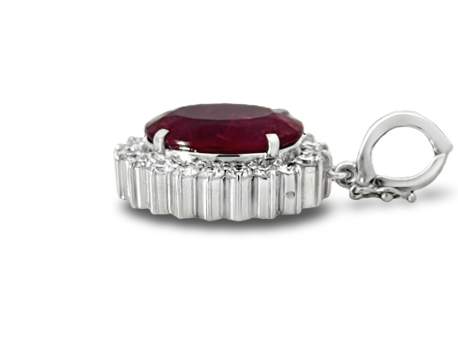 13.71ct Oval Pink Tourmaline Diamond and Platinum Pendant