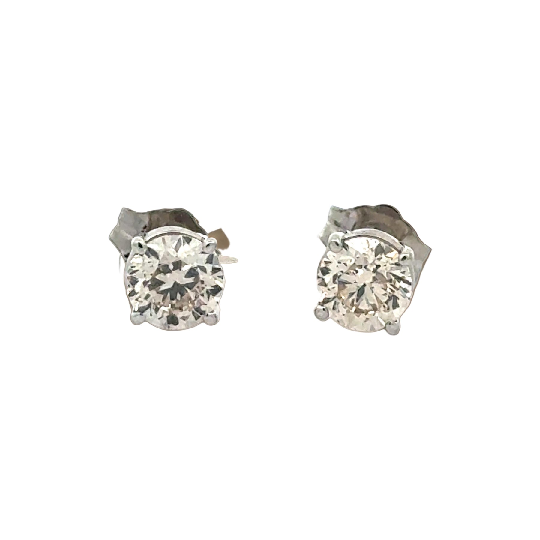 These stud earrings feature two 1-carat total weight round brilliant cut diamonds set in 14K white gold. The diamonds showcase a light brown color with SI1-SI2 clarity, lending a distinctive warmth and character to each piece. Expertly crafted, these earrings offer a refined, timeless elegance suitable for both everyday wear and special occasions.