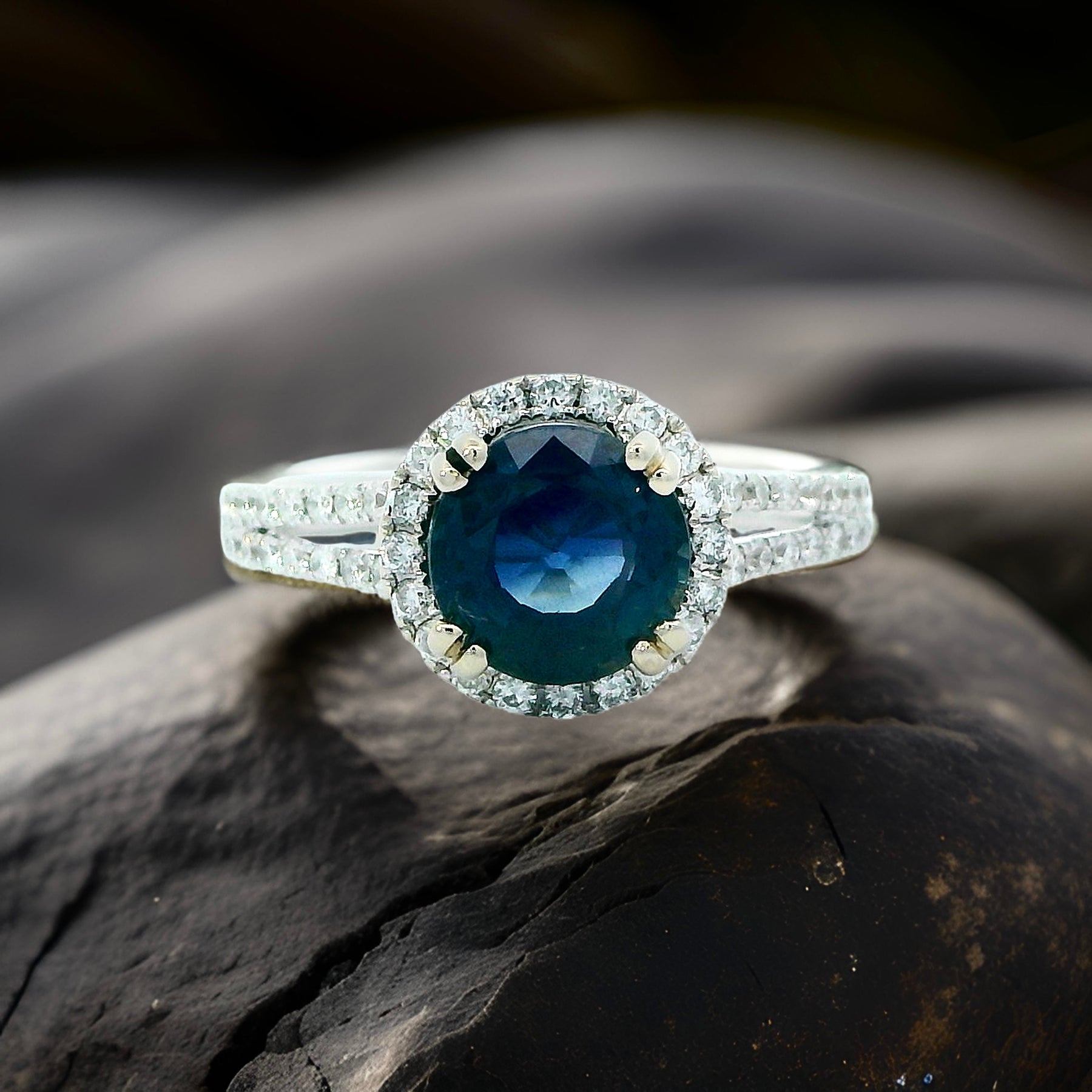 Venetti Halo Ring, 1 Round Sapphire 1.73ct, 98 Round Diamond 0.64ct G-H VS2-SI1, 18K White Gold 3.24g