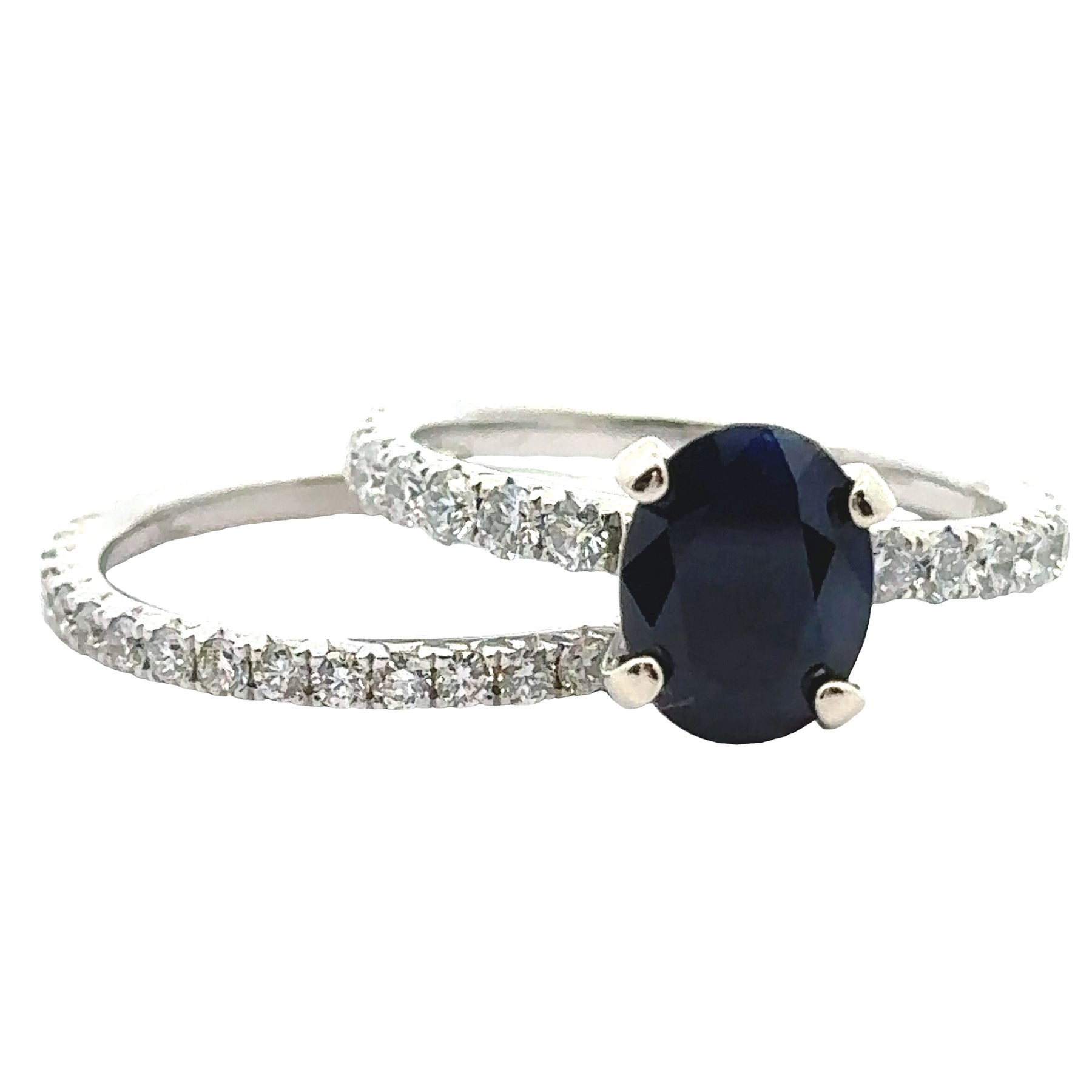 Jewelry Type : Ring Metal Type : 14K White Gold Metal Weight : 4.19 grams Ring Size : 6.25 Brand : Maya Lianna Center Stone : Stone Type : Sapphire Center Stone : Shape : Oval Center Stone : Stone Weight : 1.97 ct Center Stone : Quantity : 1 Side Stone 1 : Stone Type : Diamond Side Stone 1 : Shape : Round Side Stone 1 : Stone Weight : 0.91 ct Side Stone 1 : Quantity : 38 Side Stone 1 : Color : H-I Side Stone 1 : Clarity : SI1-SI2
