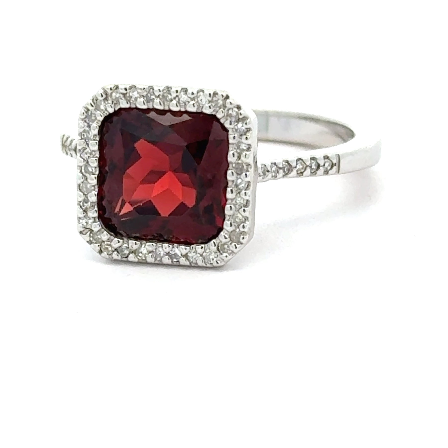 Garnet and Diamond 14k White Gold Statement Ring