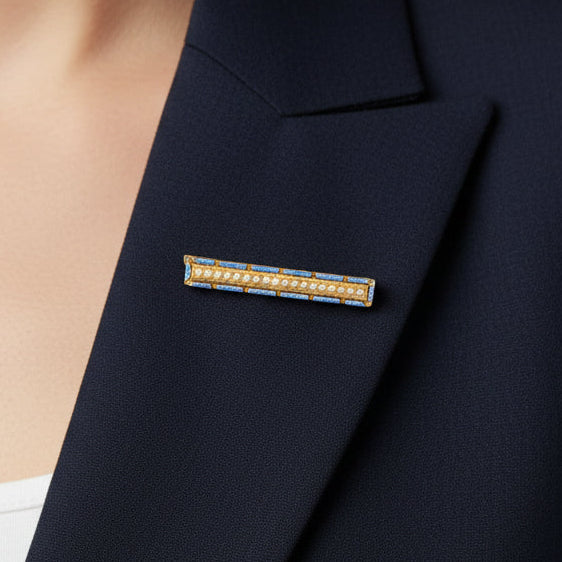 Jewelry Type : BroochMetal Type : 14K Yellow GoldMetal Weight : 2.82 gramsBrand : VintageSide Stone 1 : Stone Type : PearlSide Stone 2 : Stone Type : EmelSide Stone 2 : Color : BLUE